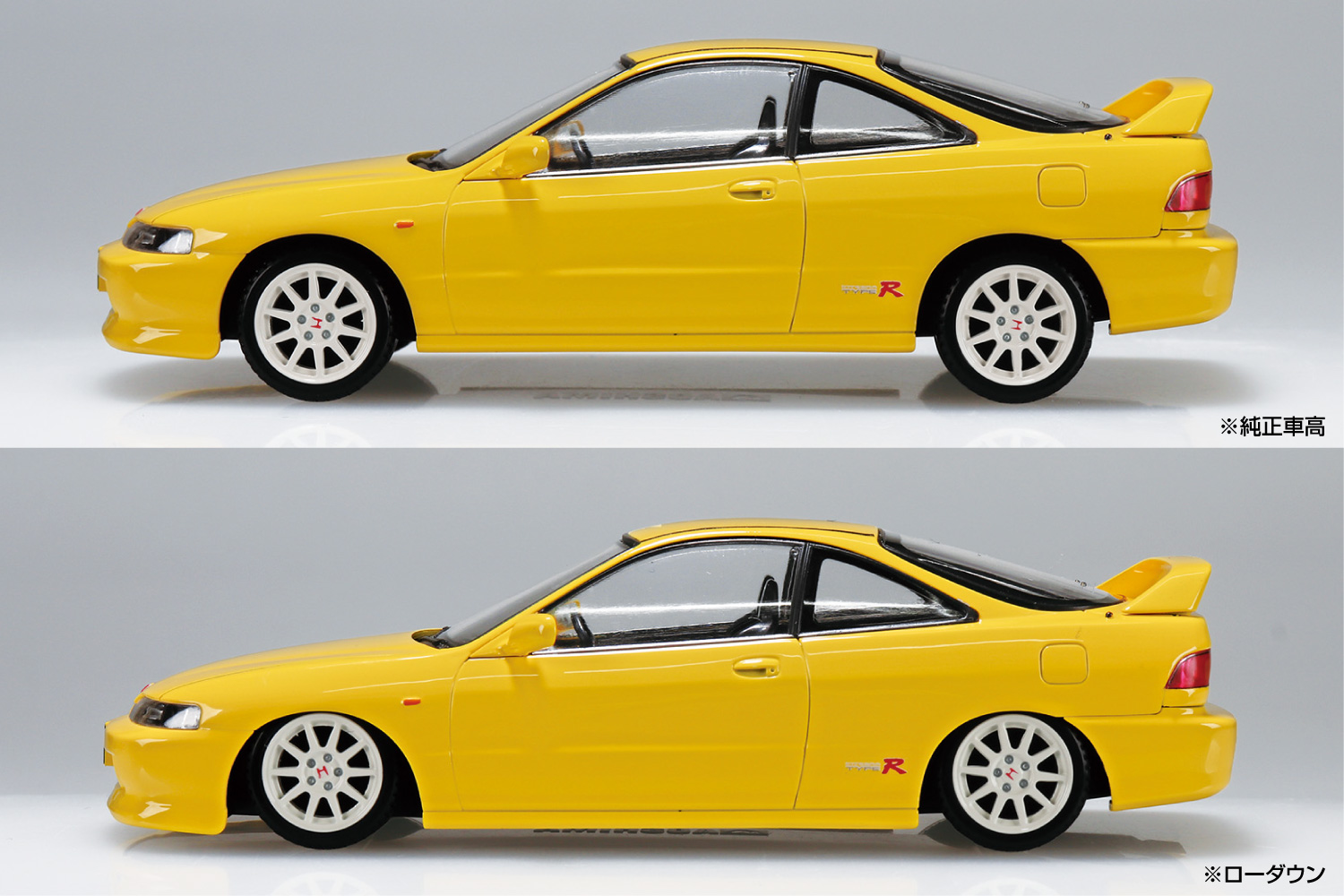 We've turned the late 1998 version of the Honda Integra Type R coupe model DC2 — the high-performance model equipped with VTEC — into a kit, commonly known as the "98 Spec." This plastic model kit features a reduced number of parts, requires no painting or glue, and is designed for enjoyment by everyone from children to seniors.