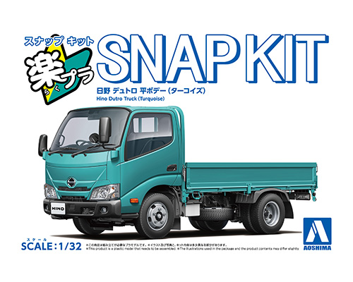 楽プラの「はたらく車」初の2トン車、日野デュトロ 低床 平トラックが登場します。ボディ形状は勿論のこと、ボディ下部フレームの装備もリアルに再現しました。パーツ数を抑え、塗装不要・接着剤不要。お子様から大人まで楽しめるプラモデルです。