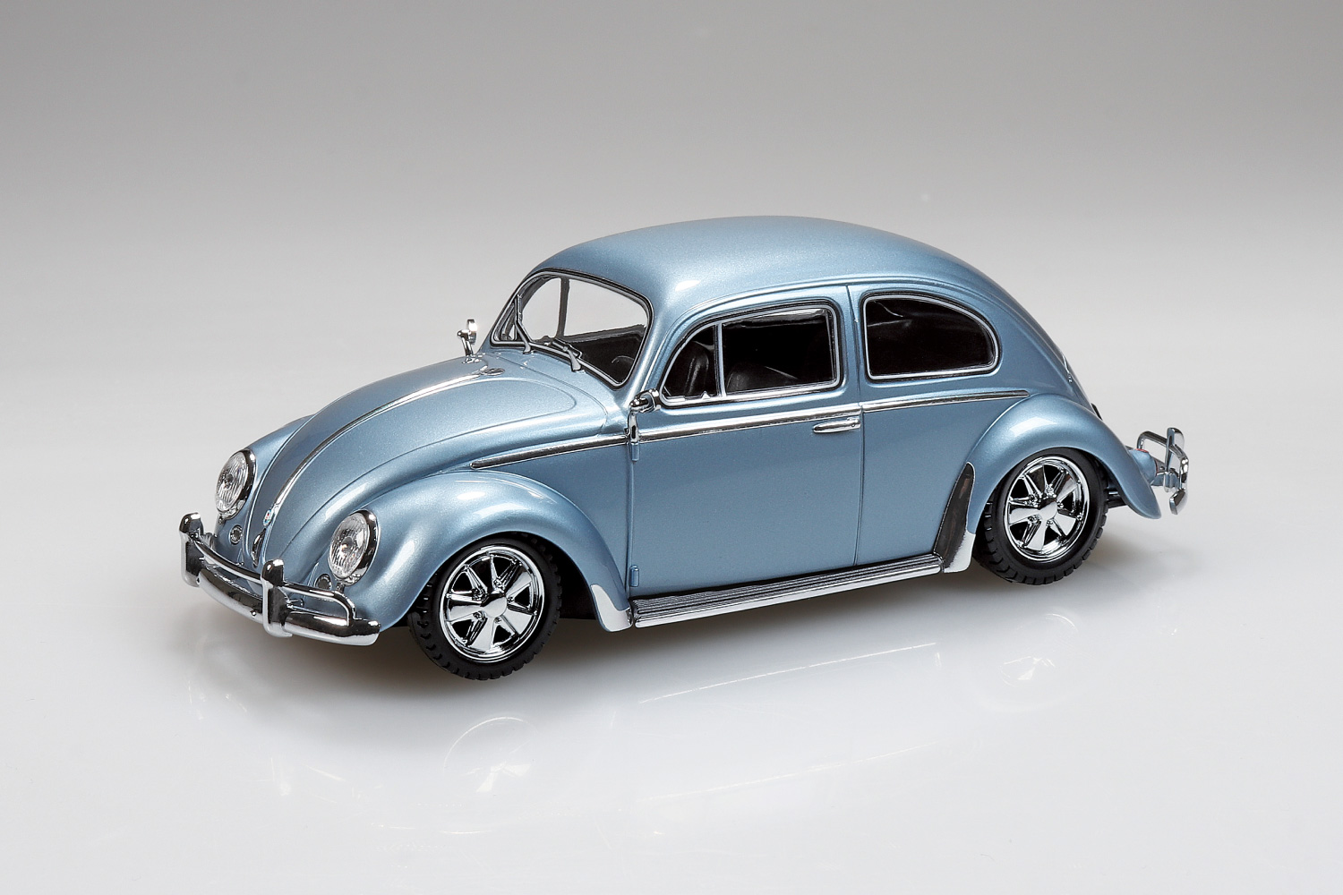 1938年に生産が開始されたフォルクスワーゲン「ビートル」、通称「オーバル」と呼ばれるモデルを再現。今回のカスタムはフロントバンパーやカスタムホイール&タイヤ等の新規金型パーツが付属します。