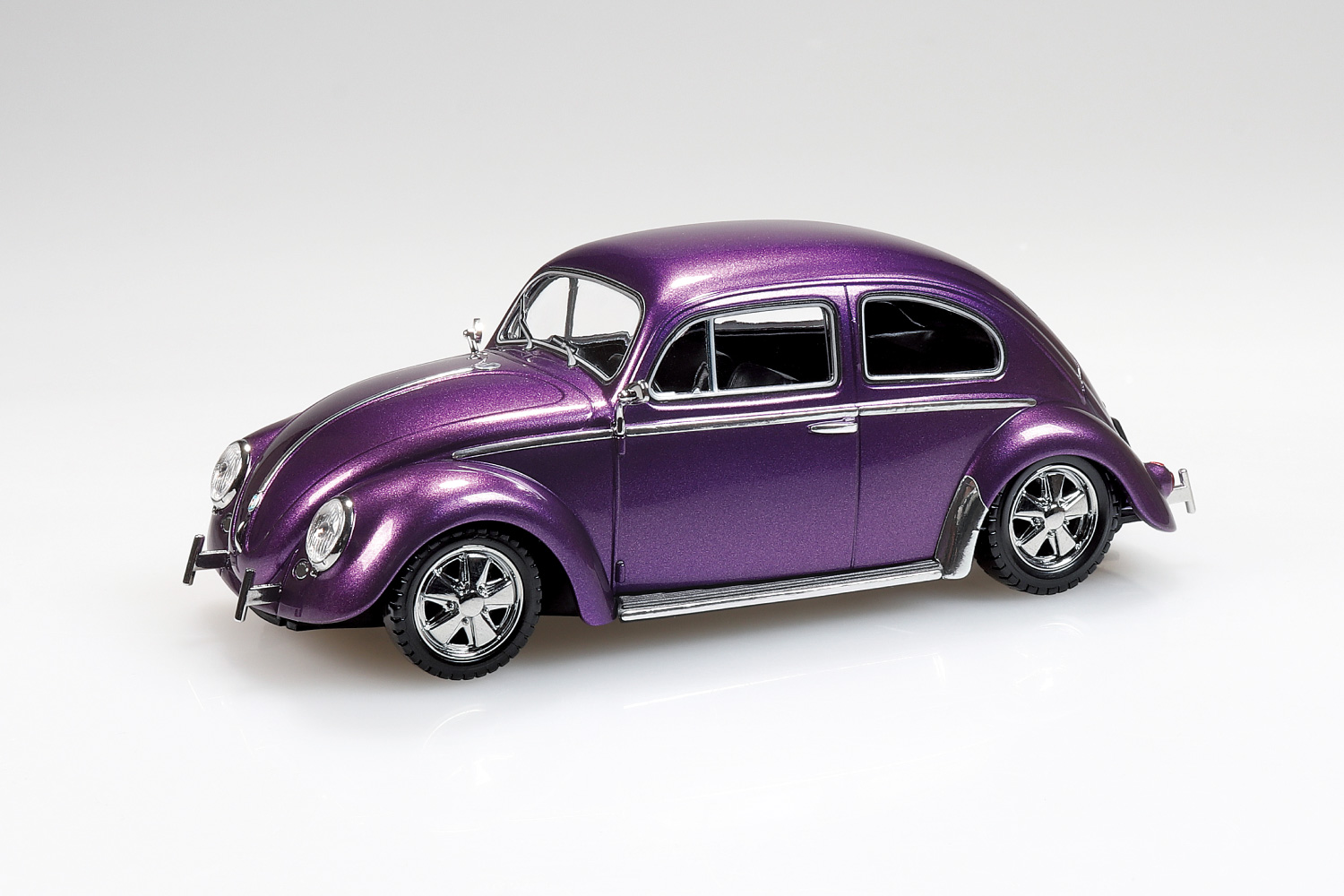 1938年に生産が開始されたフォルクスワーゲン「ビートル」、通称「オーバル」と呼ばれるモデルを再現。今回のカスタムはフロントバンパーやカスタムホイール&タイヤ等の新規金型パーツが付属します。