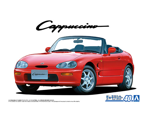 EA11R型カプチーノは、1991年に登場しました。フロントミッドシップのFR駆動をロングノーズ・ショートデッキの伝統的2シータースポーツカースタイルで包み、エンジンはアルトワークス用に開発されたF6A型3気筒4バルブDOHCインタークーラーターボを縦置きに搭載。まさにスズキのフラッグシップモデルにふさわしい高性能モデルでした。
