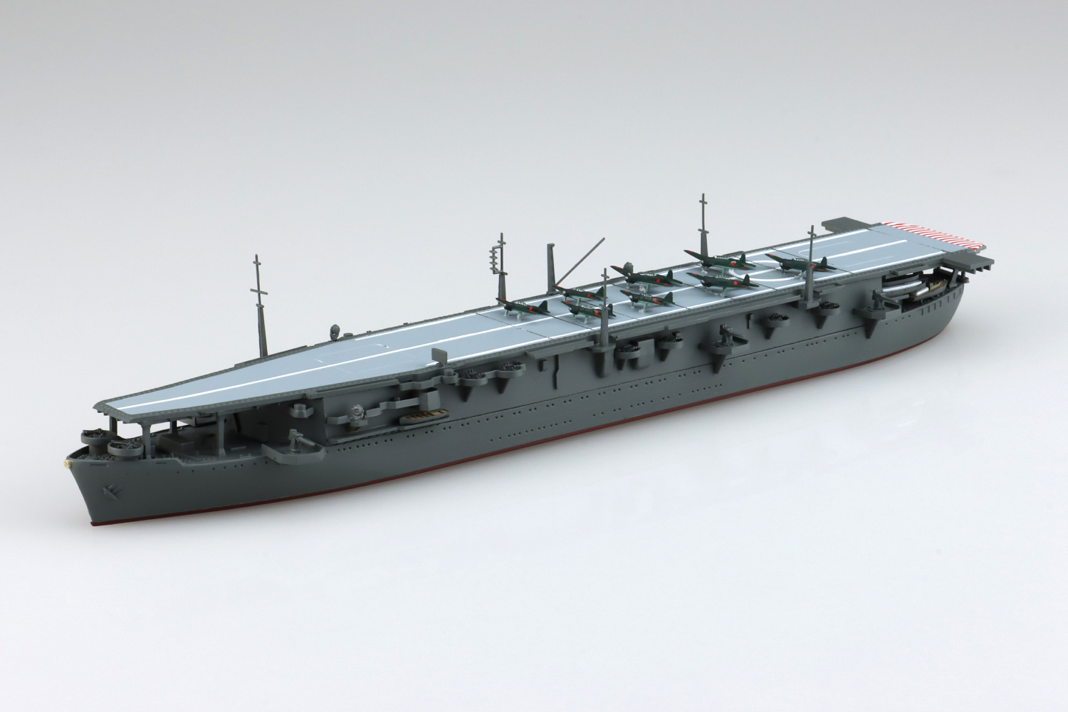 「雲鷹」は初め、日本郵船の客船「八幡丸」として完成しましたが、徴用され商船改造の特設航空母艦として就役しました。海戦での目立った活躍はありませんでしたが、兵員や航空機輸送でラバウルやトラック、東南アジアで活躍し、前線を支えた艦です。本キットは航空母艦「雲鷹」を1/700スケールでプラスチックモデルキット化。要点を抑えたパーツ構成で、シンプルで組み立て易く、かつ的確に再現できます。25㎜三連装機銃など各種艤装を新設計で追加しました。1/700スケールの精密感や緻密さをうまく表現しています。