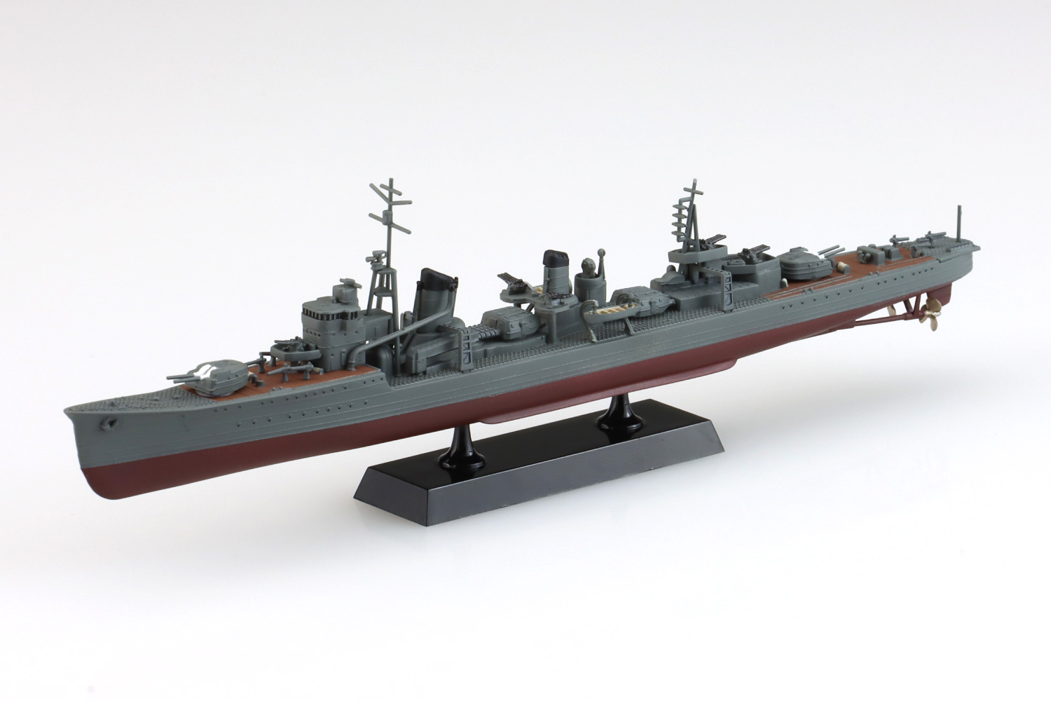 陽炎型駆逐艦の12番艦として佐世保海軍工廠で建造。真珠湾攻撃作戦から坊ノ岬沖海戦で損傷によって姉妹艦の「雪風」に砲撃処分されるまで戦い抜いた駆逐艦「磯風」。本キットは砲塔を撤去し、対空機銃を増設した大戦後期の「磯風」を1/700スケールのプラスチックモデルキット化。要点を抑えたパーツ構成で、シンプルで組み立て易く、かつ的確に再現できます。主砲や機銃など各種艤装を新設計で追加しました。