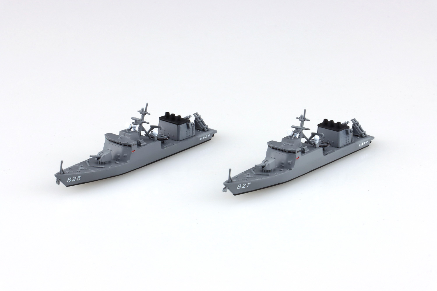 沿岸防備用の高速戦闘艇として整備された海上自衛隊のはやぶさ型ミサイル艇9隻のうち、2番艦の「わかたか」と4番艦の「くまたか」の2隻セットがリニューアル。SH-60哨戒ヘリコプター2機が付属します。カラー印刷の塗装説明図を新規で追加しました。